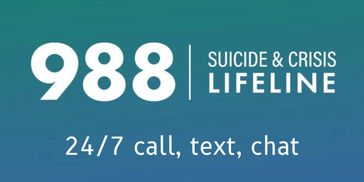 Call, text, or chat 988 to be connected to the National Suicide Prevention Lifeline (NSPL). It is confidential, free, and available 24 hours, 7 days/week, 365 days/year.