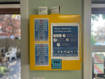 In line with its mission, the Resource Center maintains a Harm Reduction Cabinet, stocked with essential tools designed to prevent overdose, reduce harm, and promote sexual health.